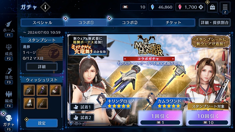 そしてそしてコラボガチャ第2弾はティファとエアリス。
