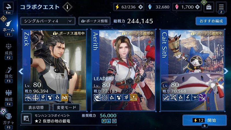 またエアリスの衣装は今までフリフリ系が多くて私の趣味じゃなかったから取ったことがなかったんだけど、今回のは他のキャラと並んでも違和感ない戦闘向きな感じなのもよかった。
