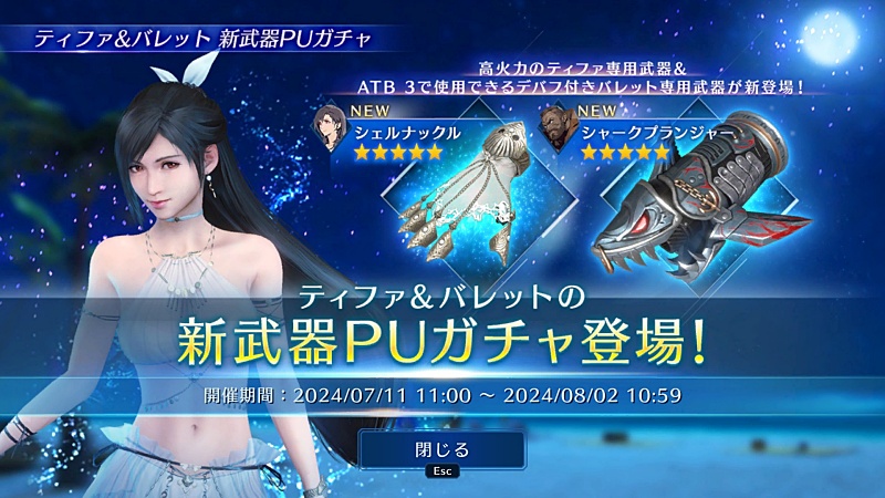 前回のユフィの水着も確定の武器1だけしか引けなかったし…