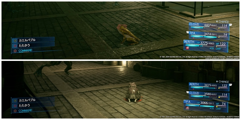 PVでバスターソード背負ったクラウドカエルは見たけど、ゲームでエアリスとティファバージョンを見れたときは吹いたw