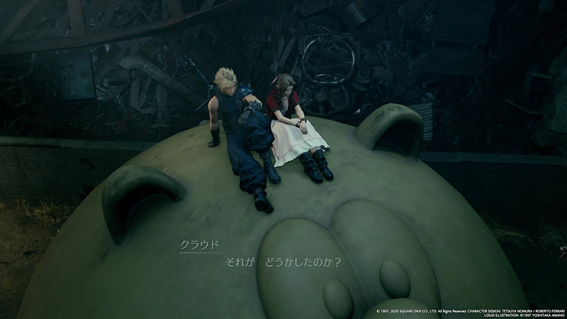 ここの場面、最初エアリスが座って後からクラウドが座ったんだけど、クラウドは気遣ってかちょっと距離を置いて座ったんだよね。