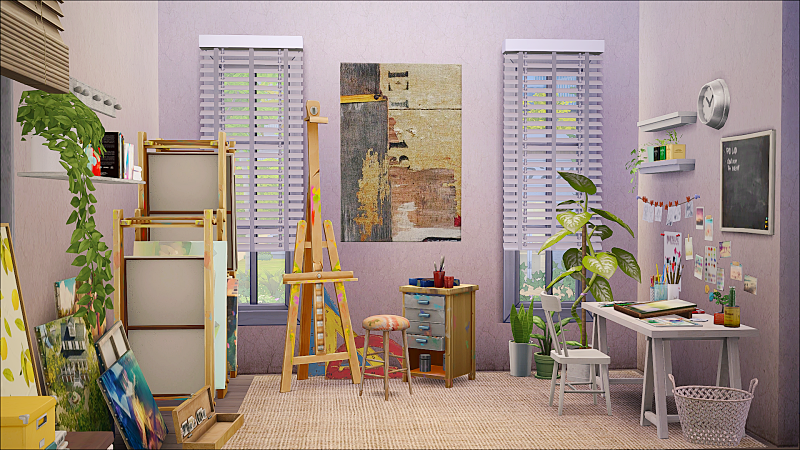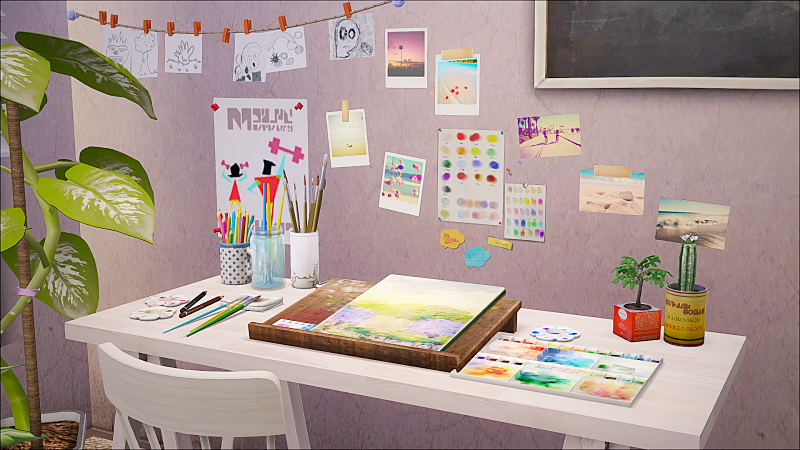 美術系の学校に通っている女の子の部屋。
