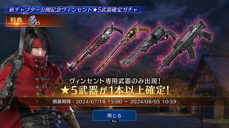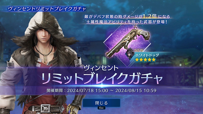 私はてっきりタークスヴィンセントがくると思ってたから。それだったらガチャ回してたんだけど…