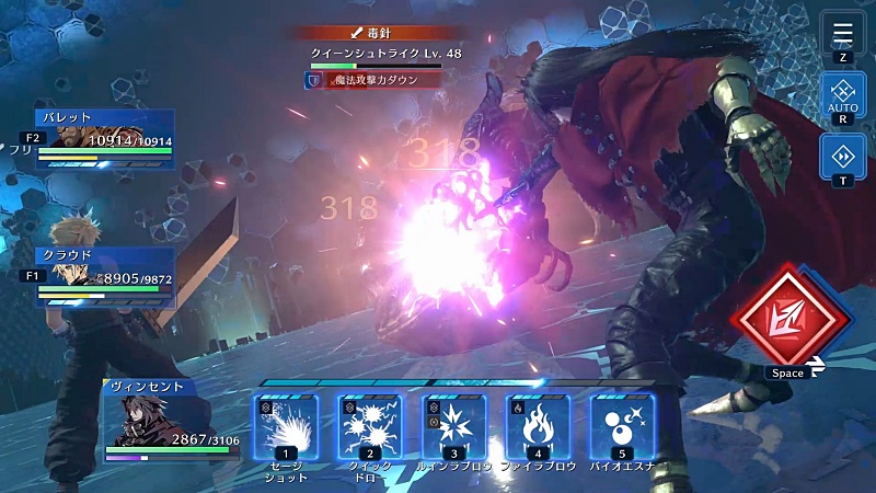 ヴィンセントは銃使いだからアクション的にはあまり派手な動きがない。