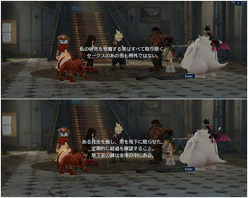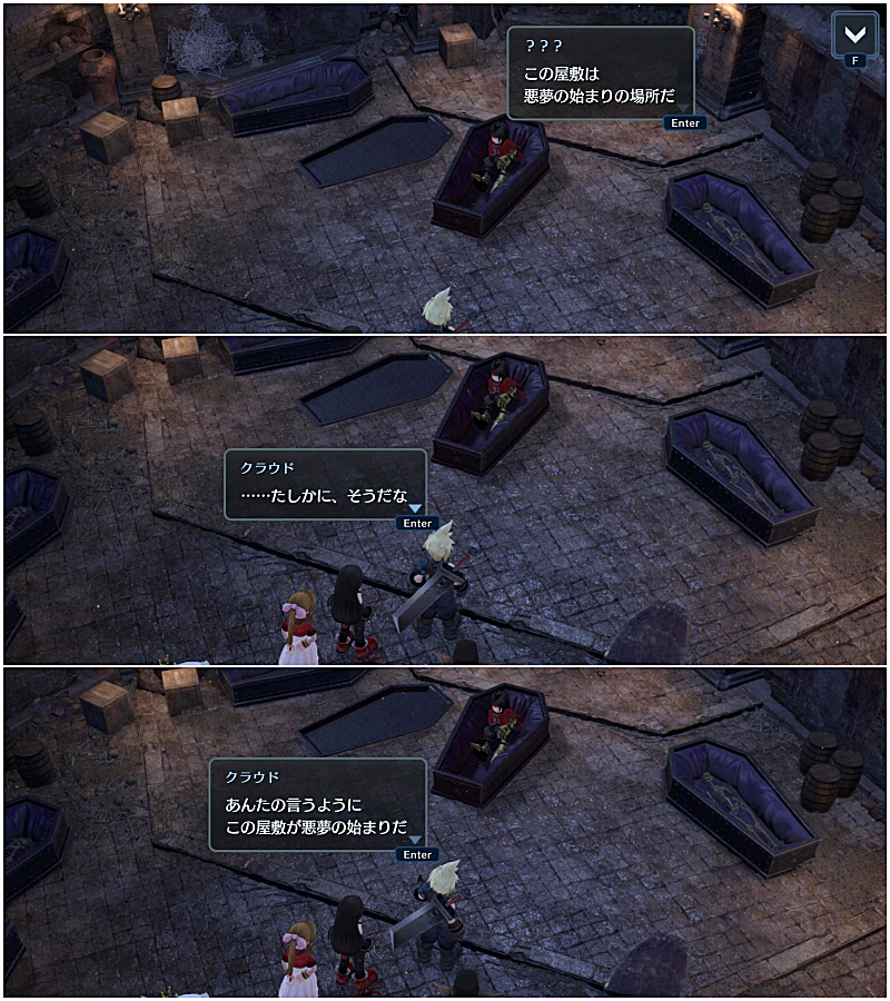 結局なにがなんだかわからないまま、神羅屋敷の前に集まるクラウドたち。