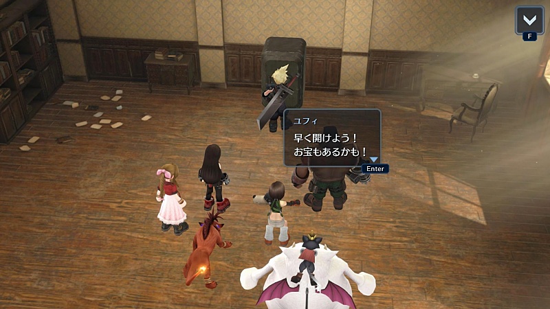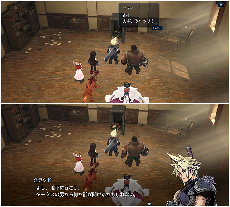 ここ、クラウドよりも後ろにいたユフィが速攻鍵を取った。