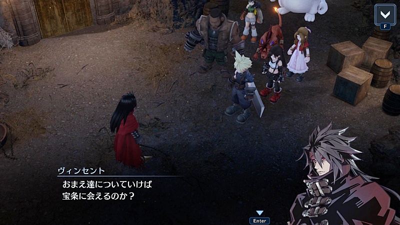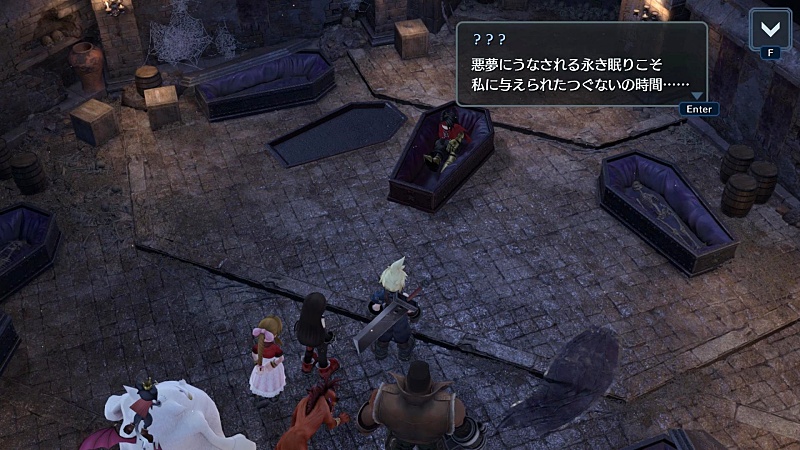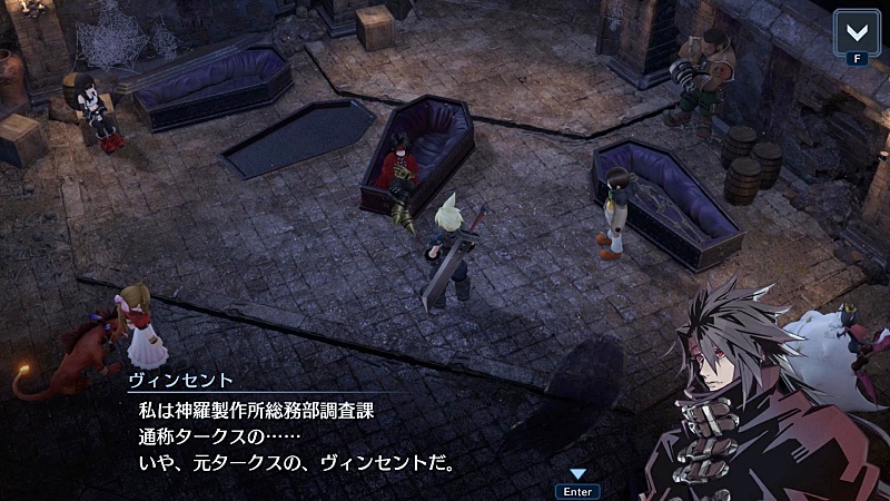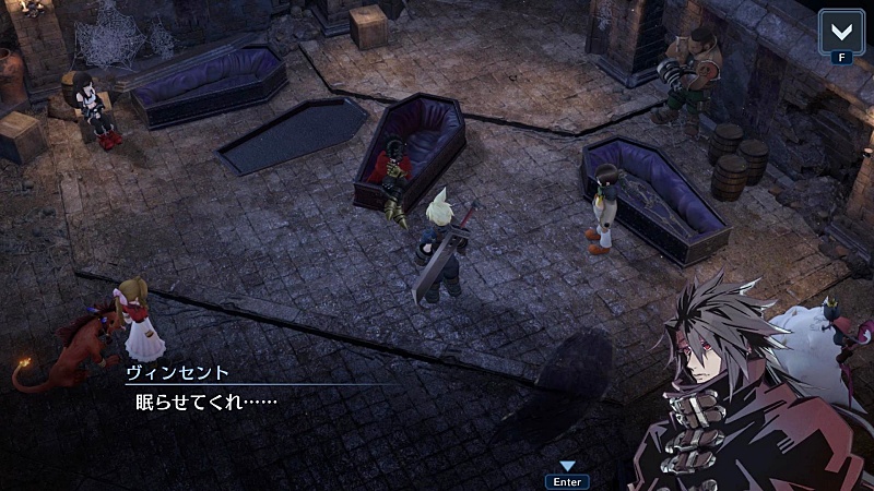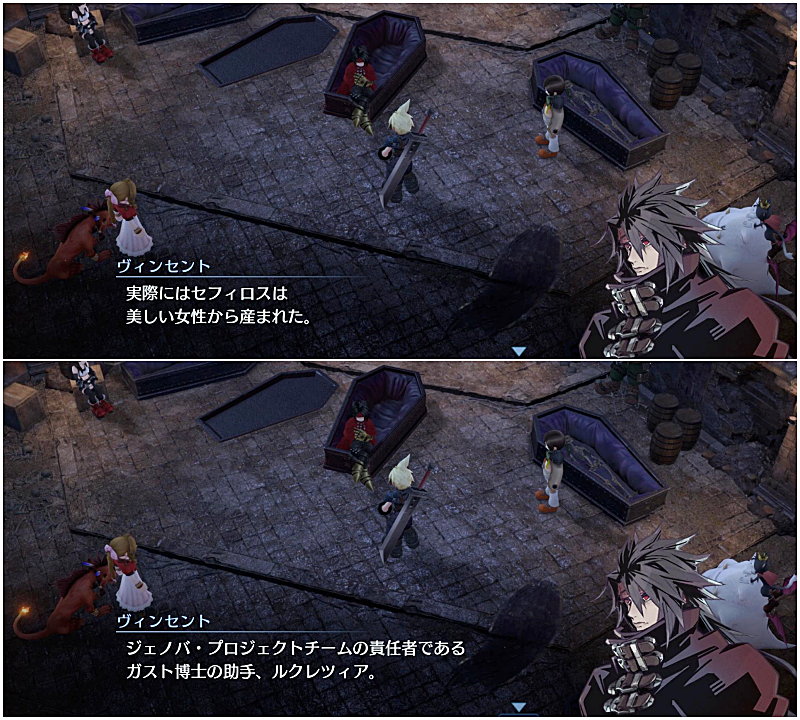 セフィロスの真実を知ってるヴィンセントは結構重要な人物だと思うんだけど、ユフィ同様隠しキャラなんだよね。