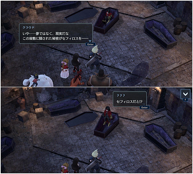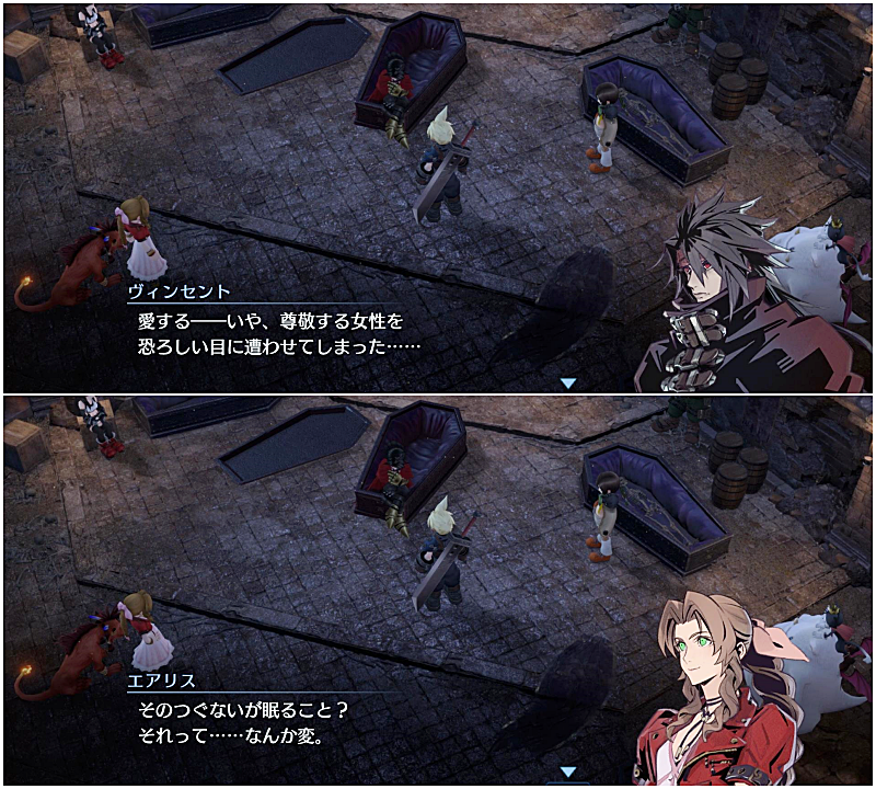 で、クラウドがこれまでの経緯をヴィンセントに話して聞かせる。