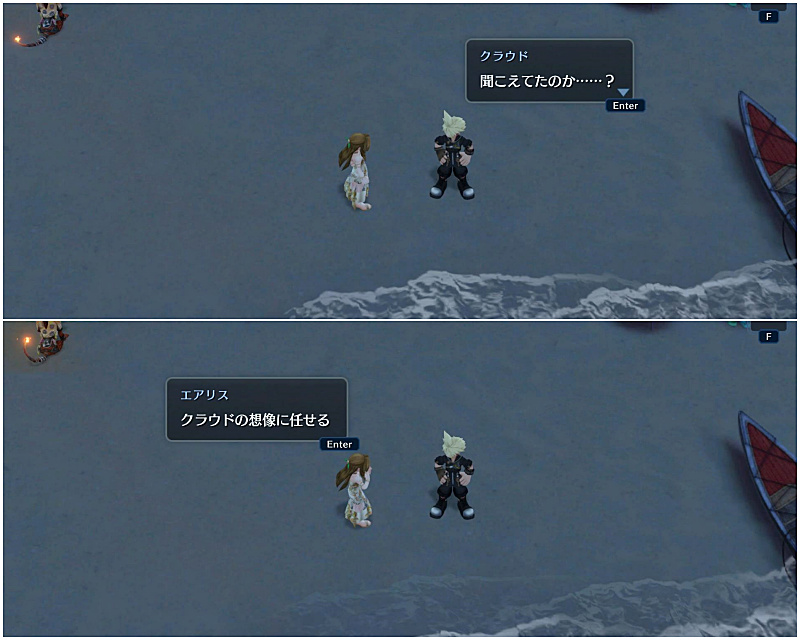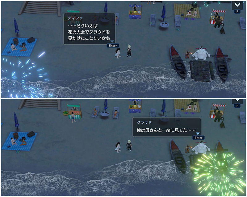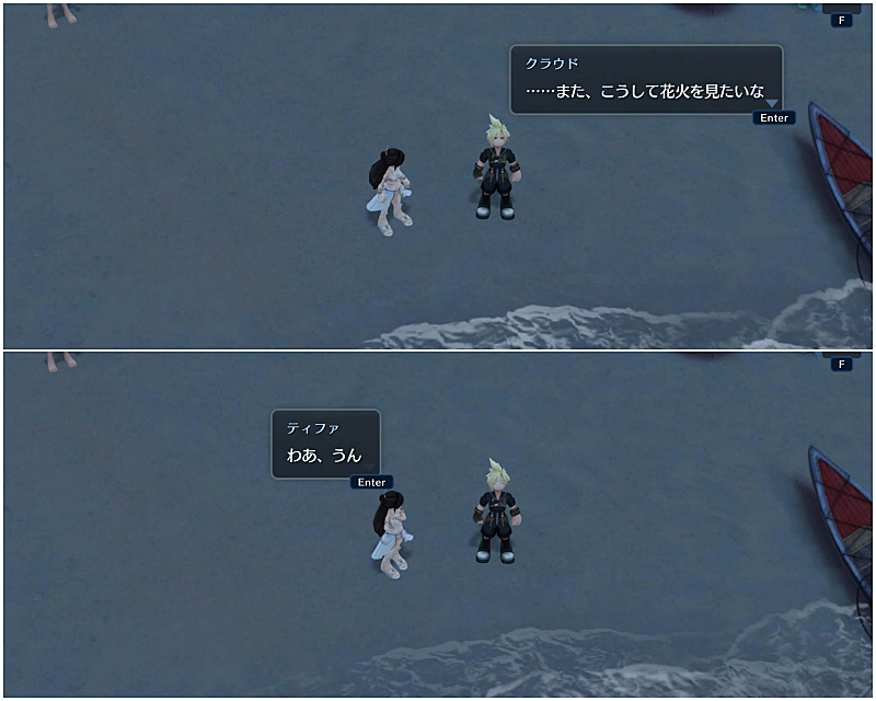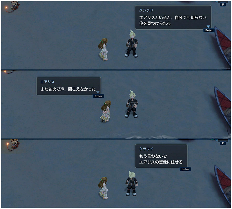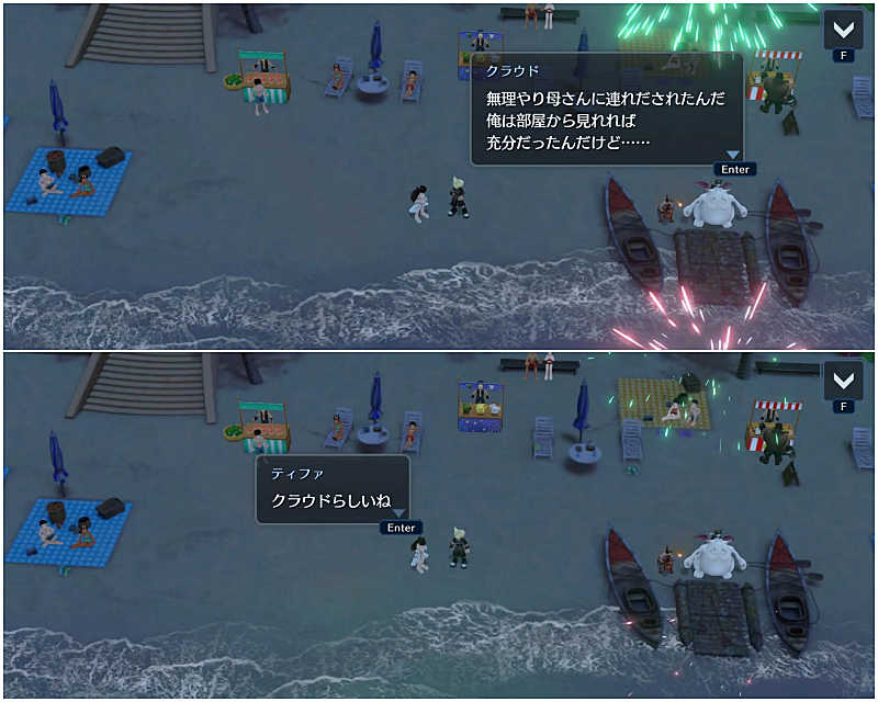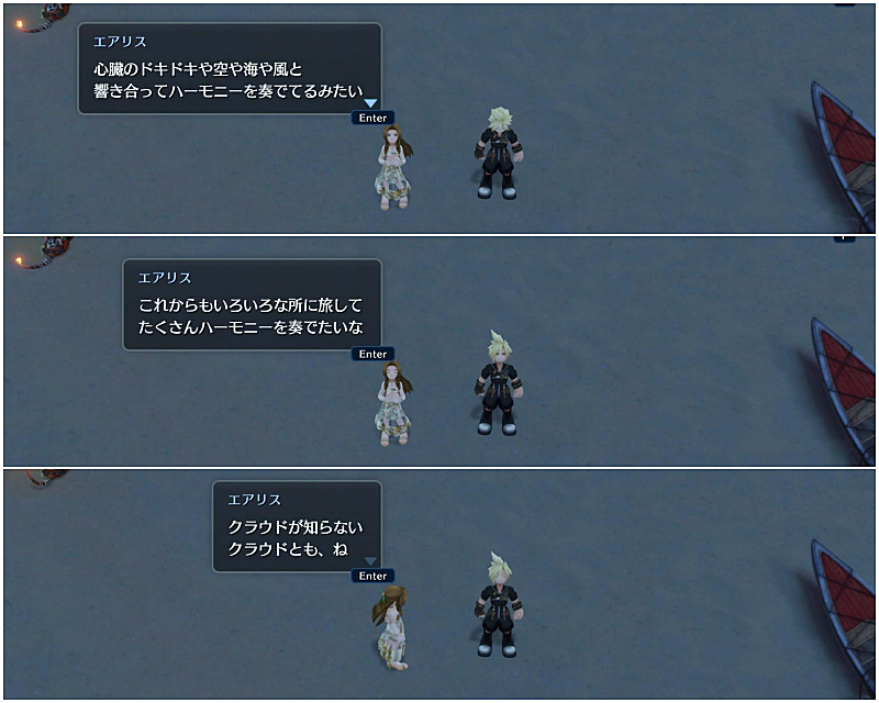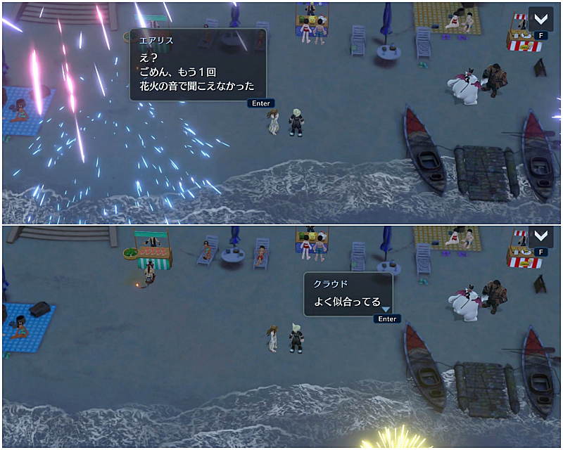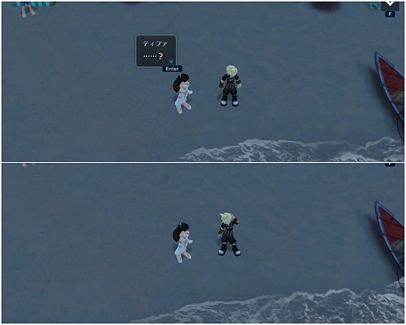 ティファのときはふたり一緒に砂浜にやってきて、エアリスのときはエアリスが遅刻。