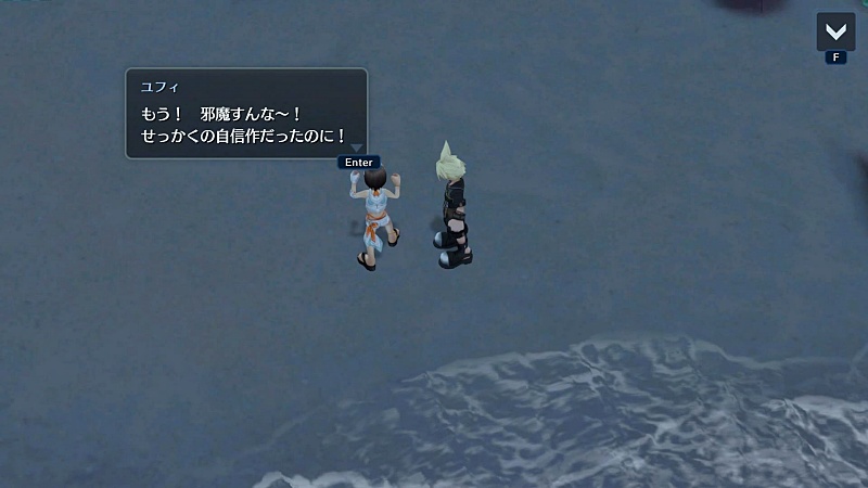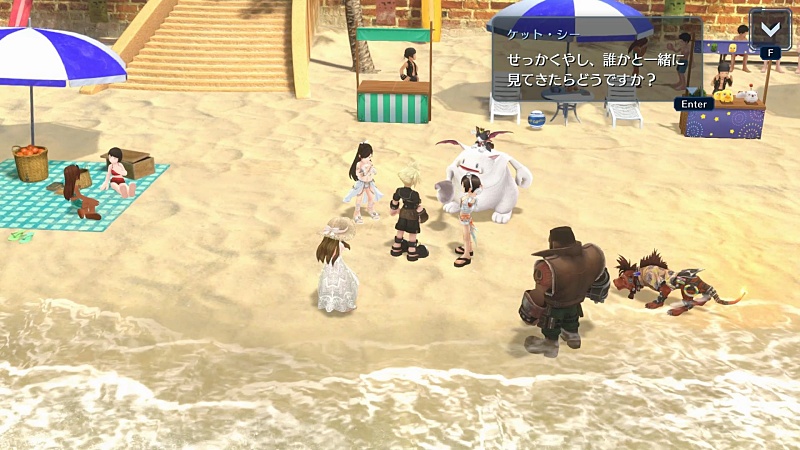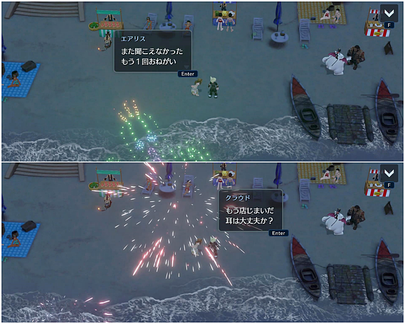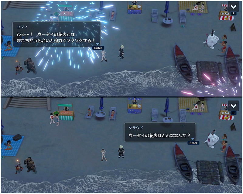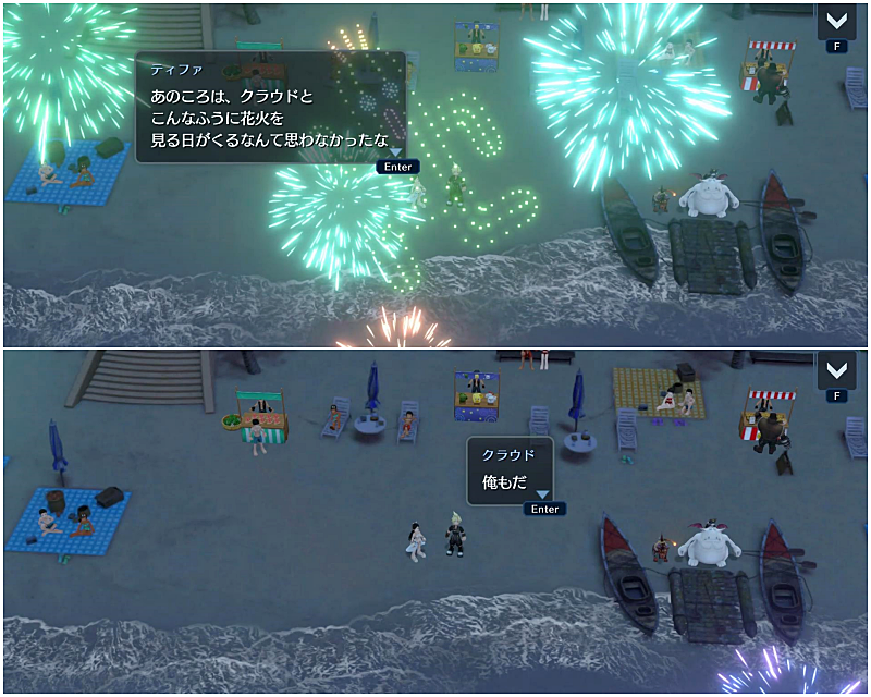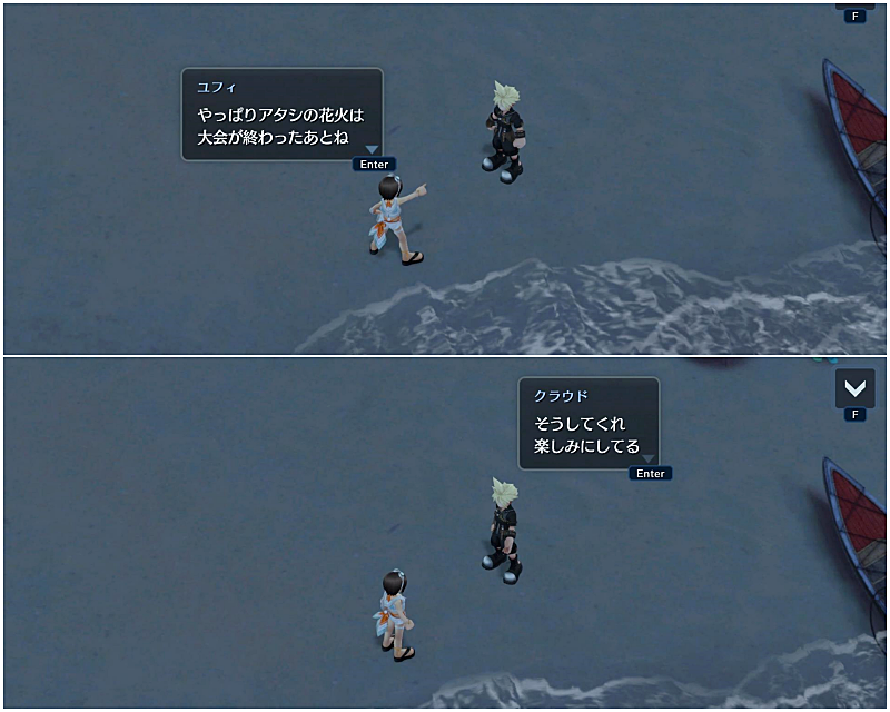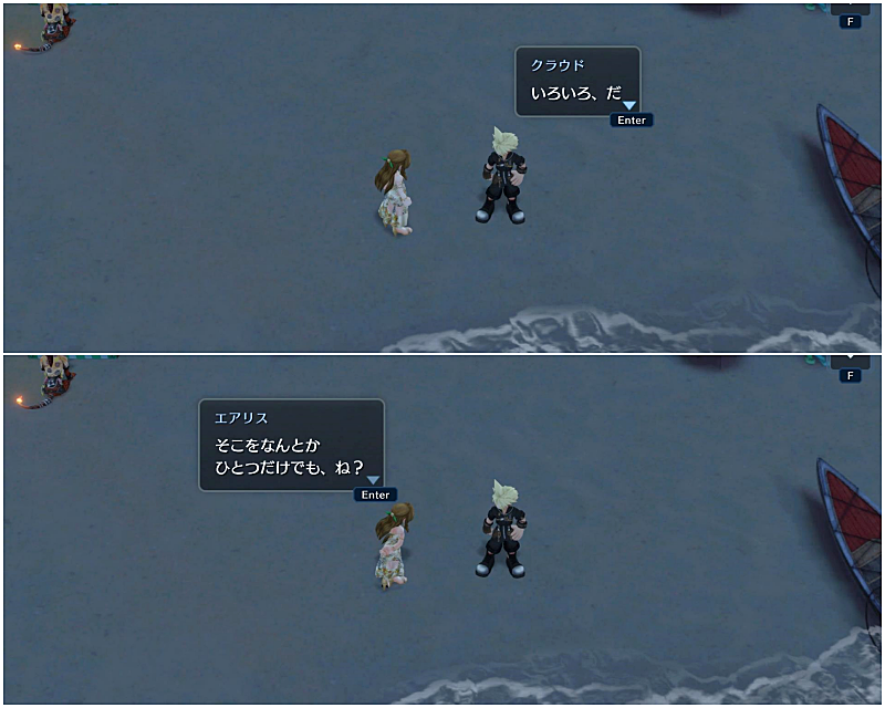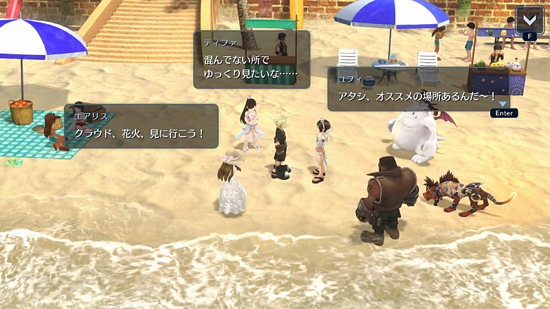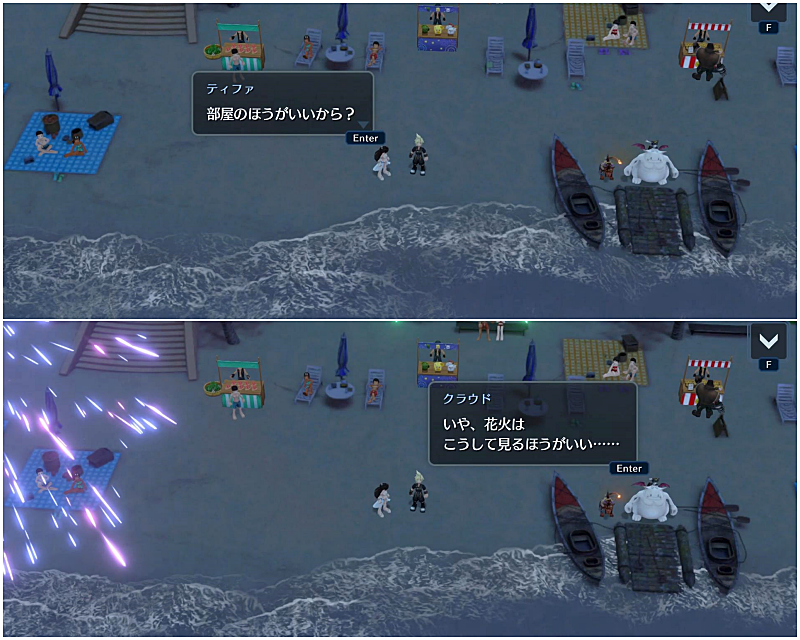 ティファのときはふたり一緒に砂浜にやってきて、エアリスのときはエアリスが遅刻。
