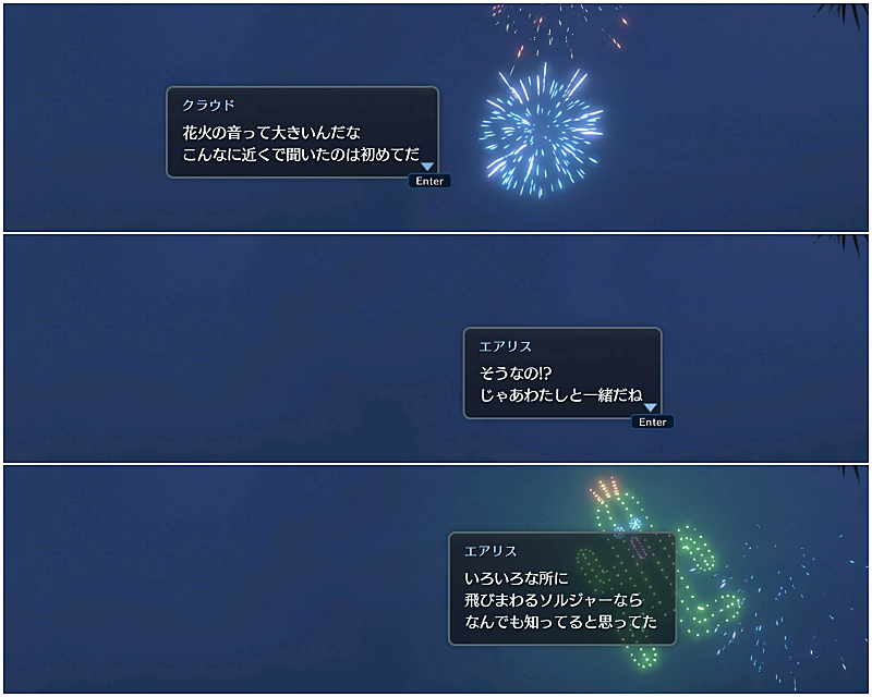 きっとクラウドはニブルヘイムにいた頃もティファと一緒ならはりきって外に出て花火を見ただろうな(*´▽`*)