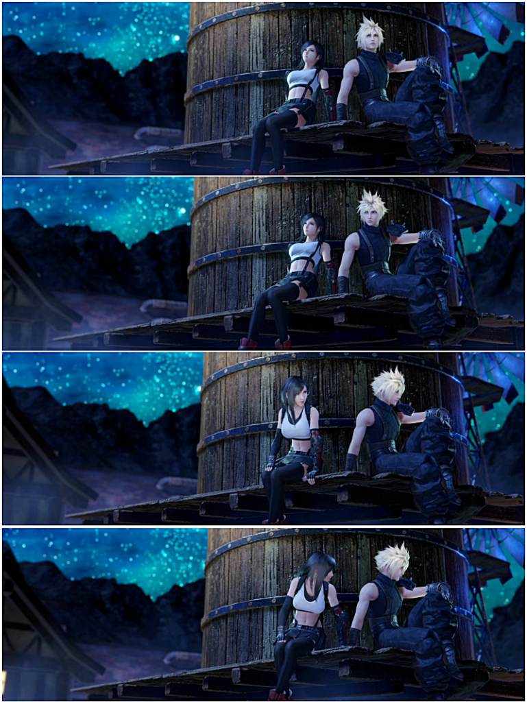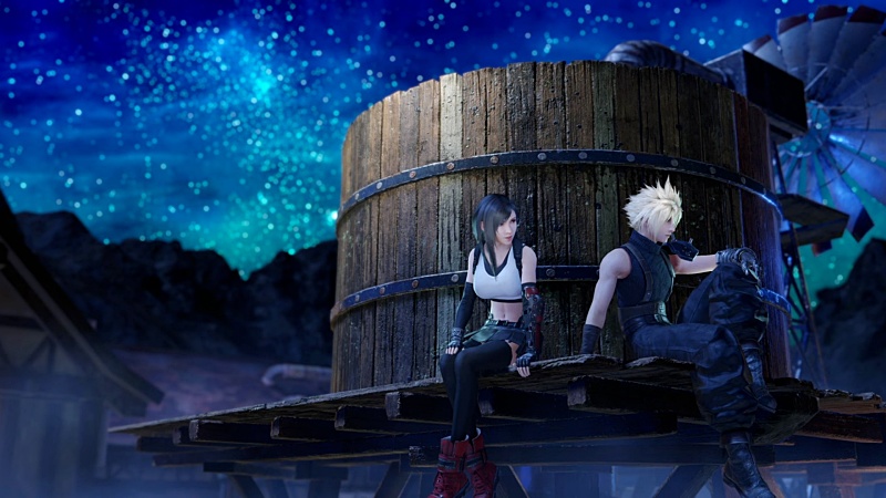 クラウドとティファの象徴でもあるこの給水塔にエアリスを登らせて、さらにはティファと同じ位置に座らせるとか絶対やっちゃダメなやつ。