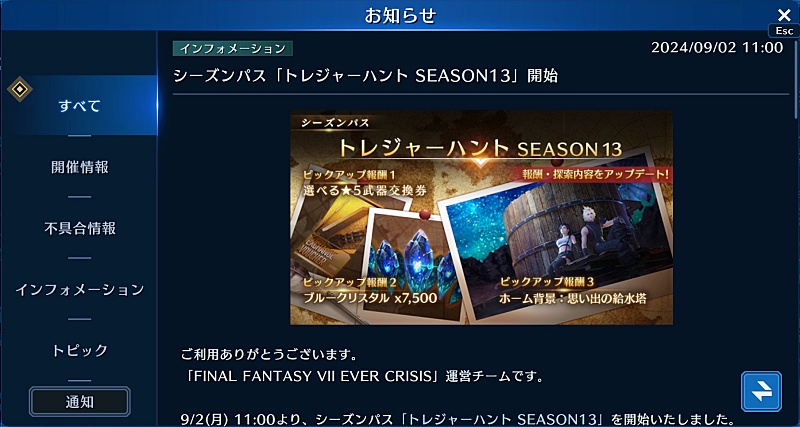 エバクラ9月のシーズンパスのホーム背景がクラウドとティファの思い出の給水塔です。