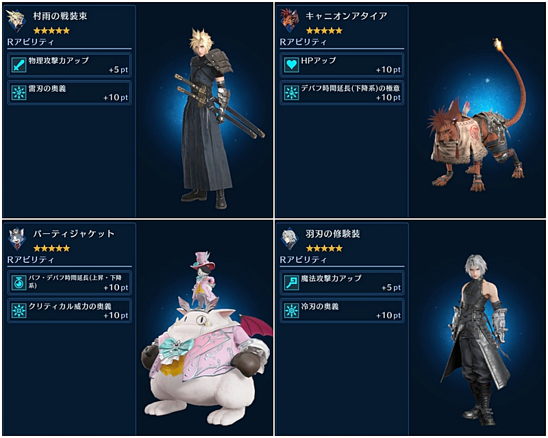 クラウドのアニバ限定衣装は事前告知で知ってたけど、他がエアリス、ティファ、ユフィの7女子メンバー。