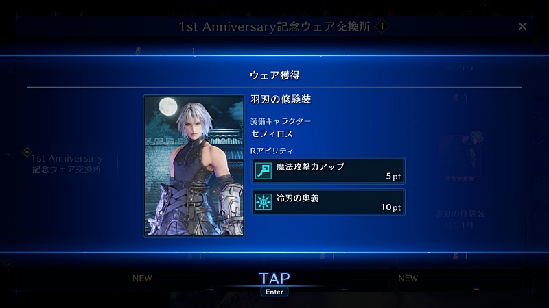 普段ならこの画面時は原作7のメインテーマが流れているんだけど、今回は一周年ということでFFのメインテーマが流れててとても懐かしくなりました。