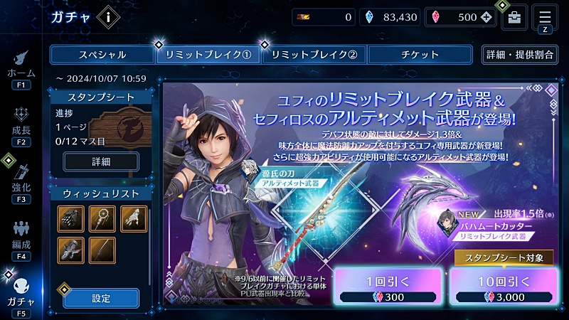 エバクラアニバの第二弾ガチャはユフィです。