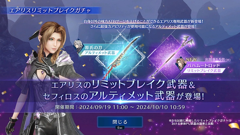 今回のアニバイベントストーリーがセトラの話なので、アニバガチャの最後はエアリスだと思っていたからちょっとびっくり。