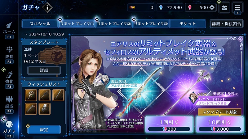 アニバ第三弾ガチャはエアリスです。