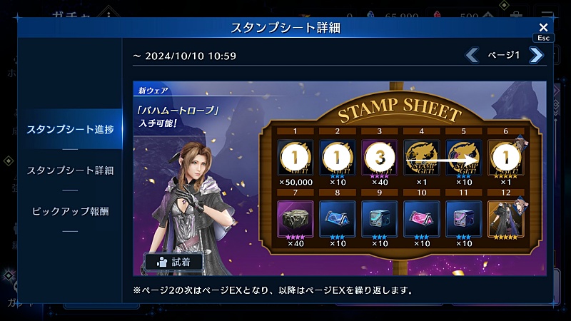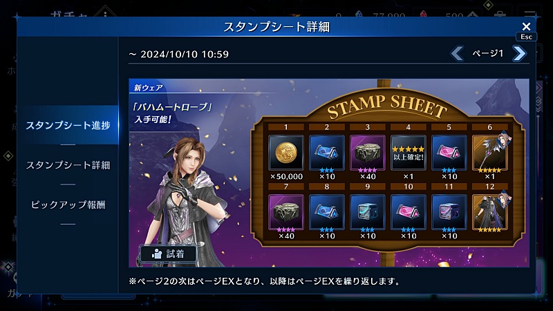 スタンプ運よければユフィのときのように衣装も取りにいくつもりでガチャ開始。