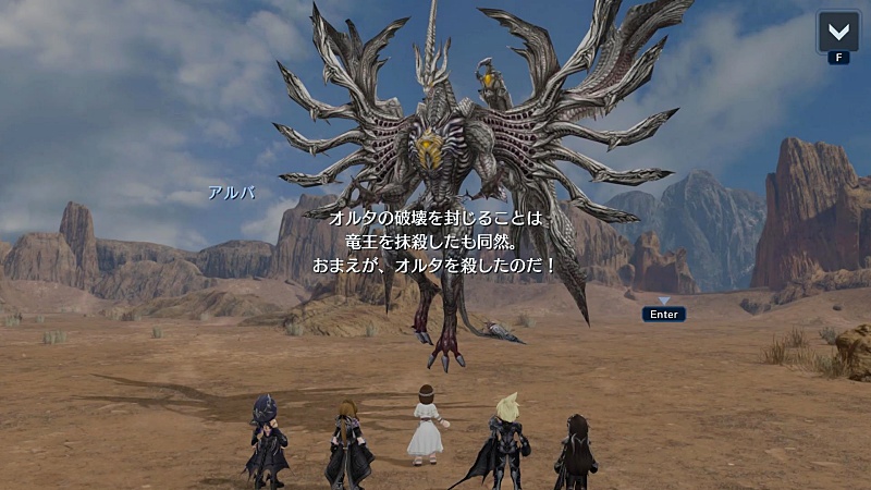 で、大雑把に言うと、そのふたつのバハムートが激突し合っていてチャキヤたちを守っているオルタがアルバに怪我を負わされて段々と弱っているからおまえたち4人でアルバをやっつけてくれ!ということらしい。