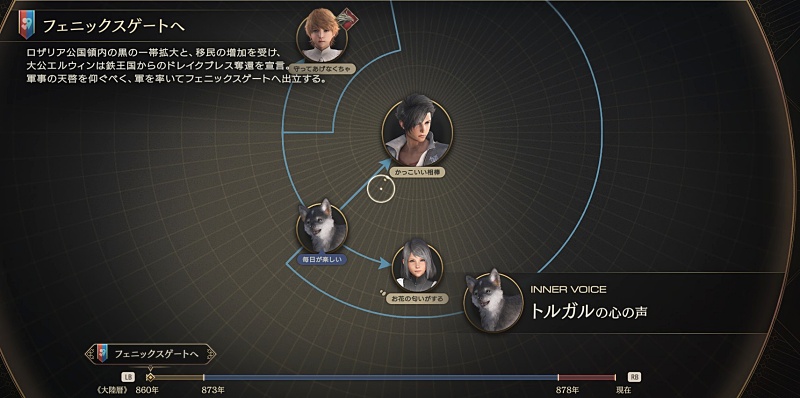 ストーリーも段々と複雑化して、その上登場人物も増え、さらにはクライヴが知らない場面(その一方で…みたいなカットシーン)もよく入るから関係性も含めて頭の整理整頓したかったからほんと助かる。