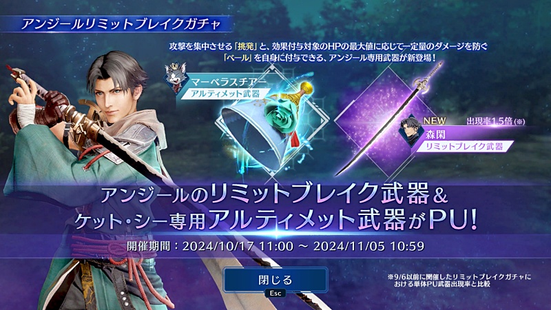 そしてアンジールのガチャ衣装。
