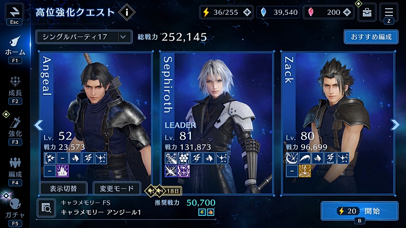 で、若アンジール加入ならこうしたパーティを組みたくなるよね、ソルジャー1stパーティ♪