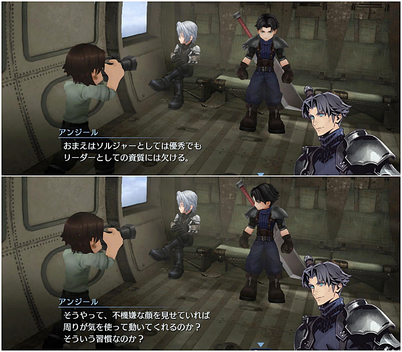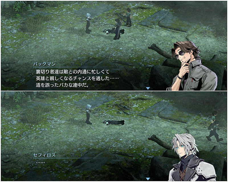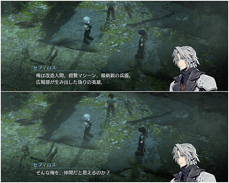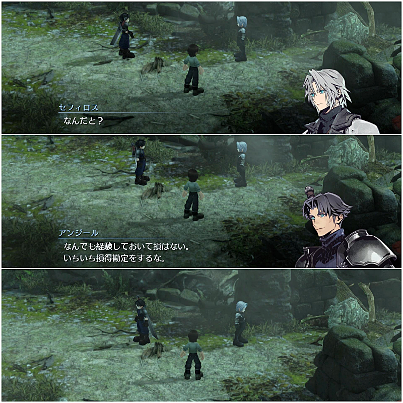 案の定、グレン(エピソード1での仲間)に初めて叱られたときのことを思い出すセフィロス。