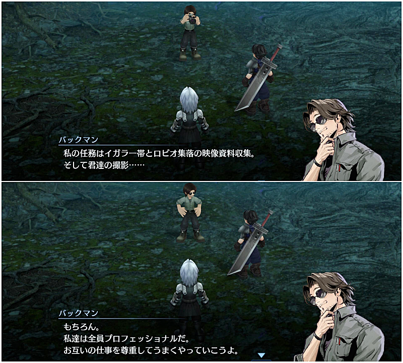 その任務に同行するのがカメラマンのバックマン。神羅の広報の人間。