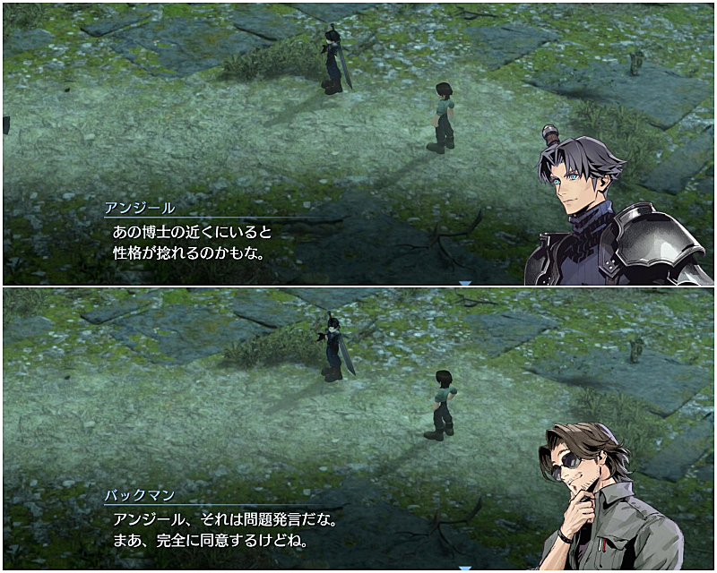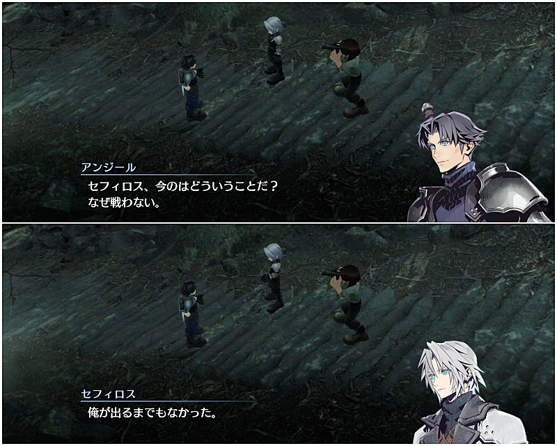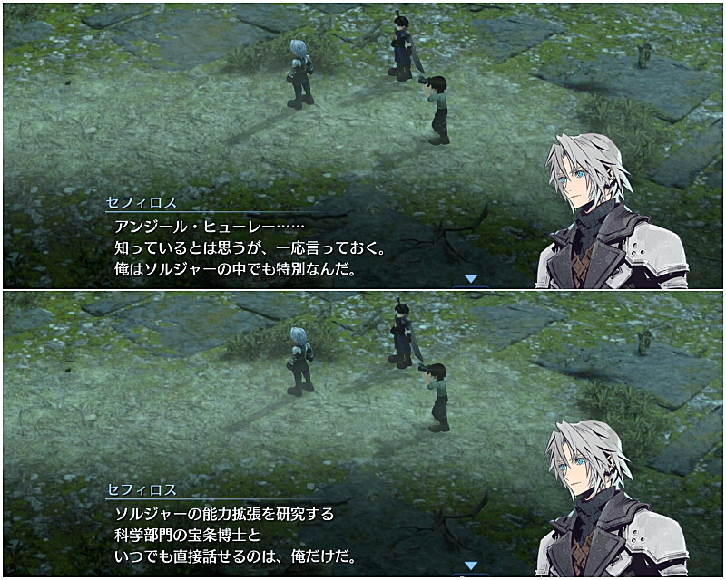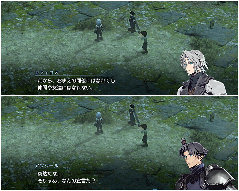 セフィロスの本心を知らないアンジールたちの立場だけを見ると、このふたりのやり取りはちょっと笑ってしまいました。