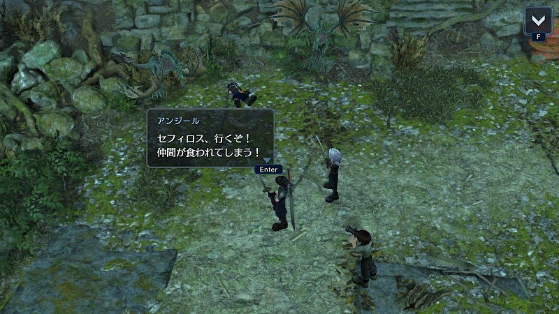 見つけた同士がモンスターに襲われていて、こういう時はちゃんとモンスターに向かう姿勢を見せるセフィロス。