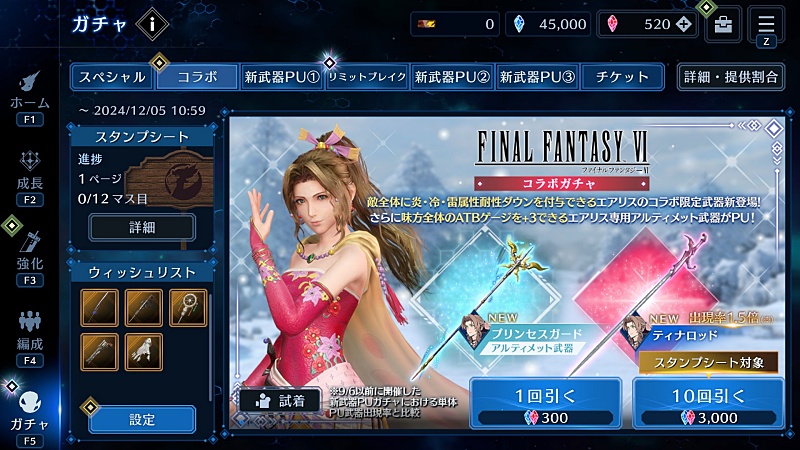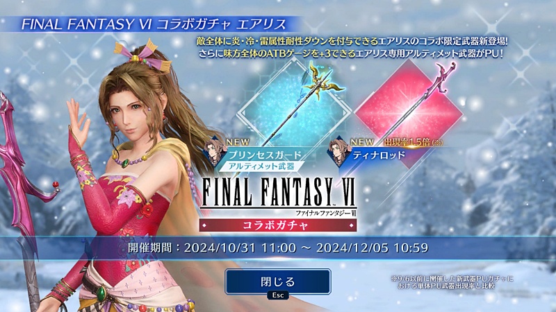 そんなFF6コラボの第一弾ガチャがエアリスティナ。