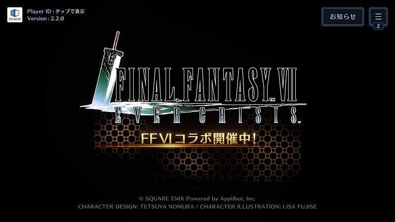 ログイン前の画面でFF6の曲「ティナのテーマ」が流れる。