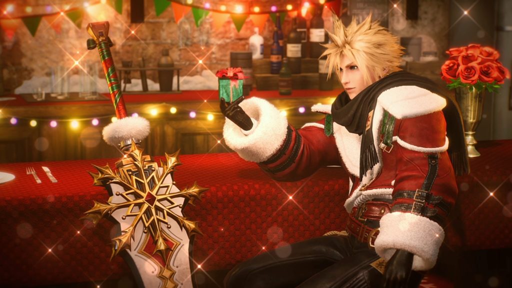 クラウドのちょいダサクリスマス衣装もふたりおそろいと思えば、まあ許せるかなw