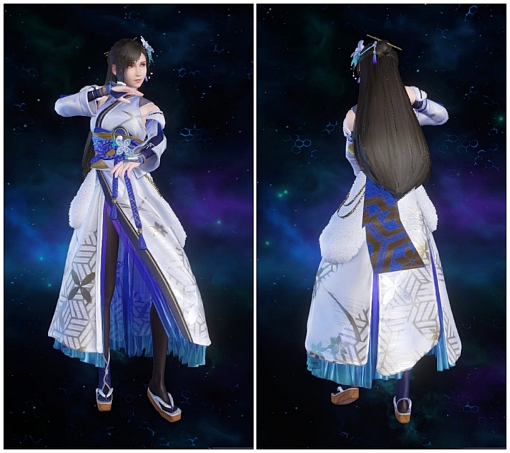 ティファはモーション的に長いスカートやひらひら系がダメっぽいので、お正月の着物も上は袖なしで下は祭りとかで着る法被の下の白いパンツ?みたいな飾りっ気のない衣装になると思っていたからw
