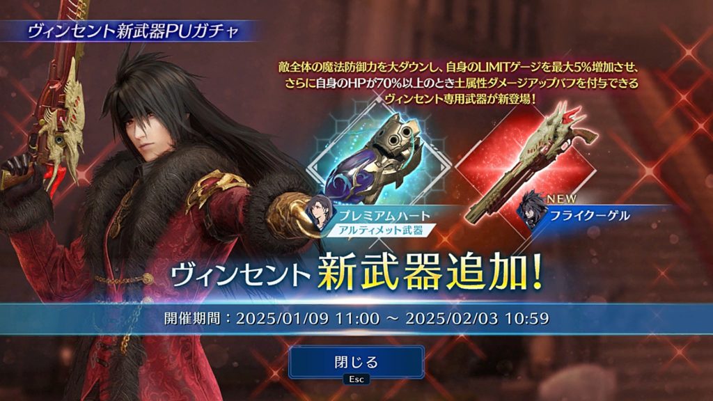 しかし今月のアルティメット武器(ティファ)は物欲センサーが働いているのか当たりませんでした。