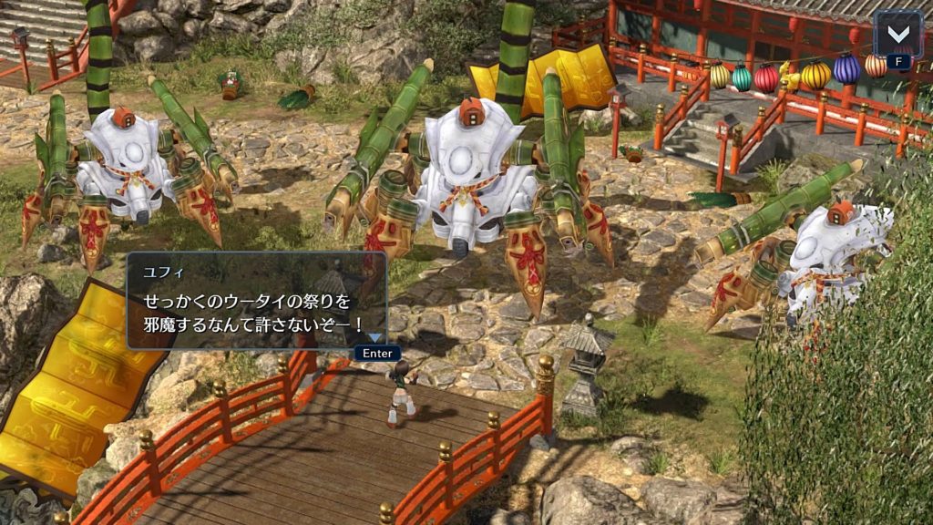 声のする方へ行ってみるとユフィが神羅のモチ兵器に囲まれていました。