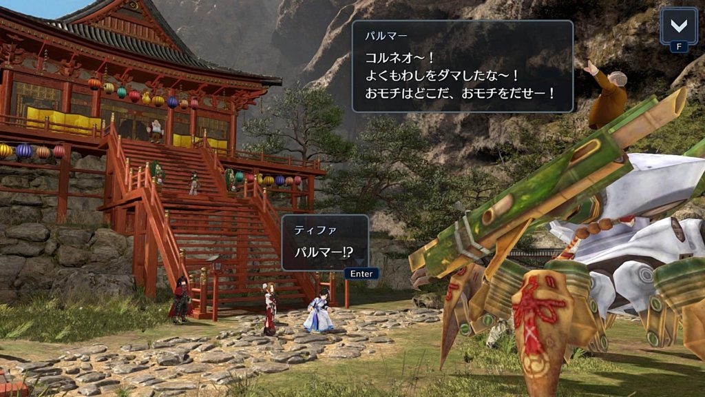 エアリスはモンハンコラボの時に取ったカムラ衣装で気持ちお正月感を味わう。