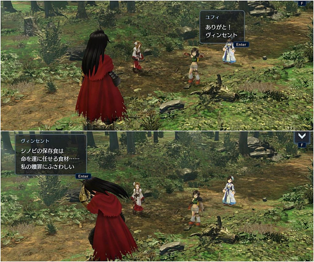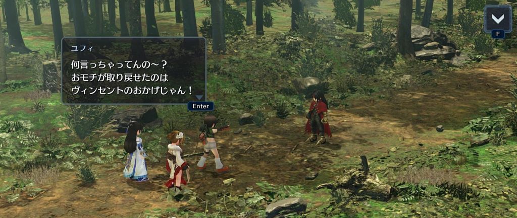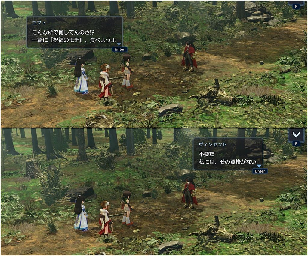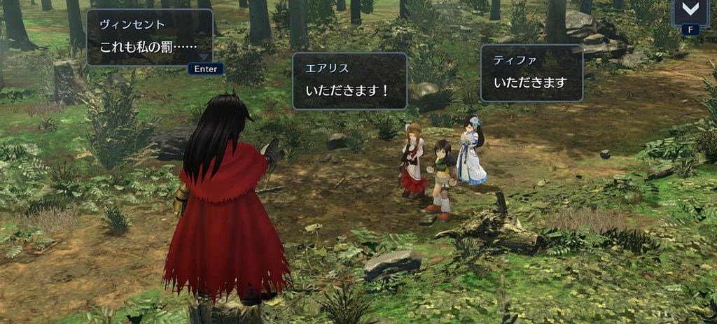 当然エアリスやティファに咎められて改めてこう言い直したユフィだけど、ヴィンセントは相変わらずで…