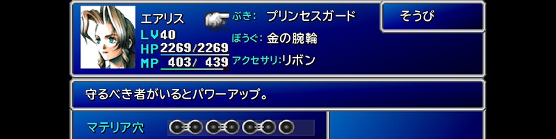 が、二週目以降はこのダンジョンのボス戦まえにエアリスの装備をいそいそと剥ぎ取ってしまう、そんな自分が毎度イヤになります。