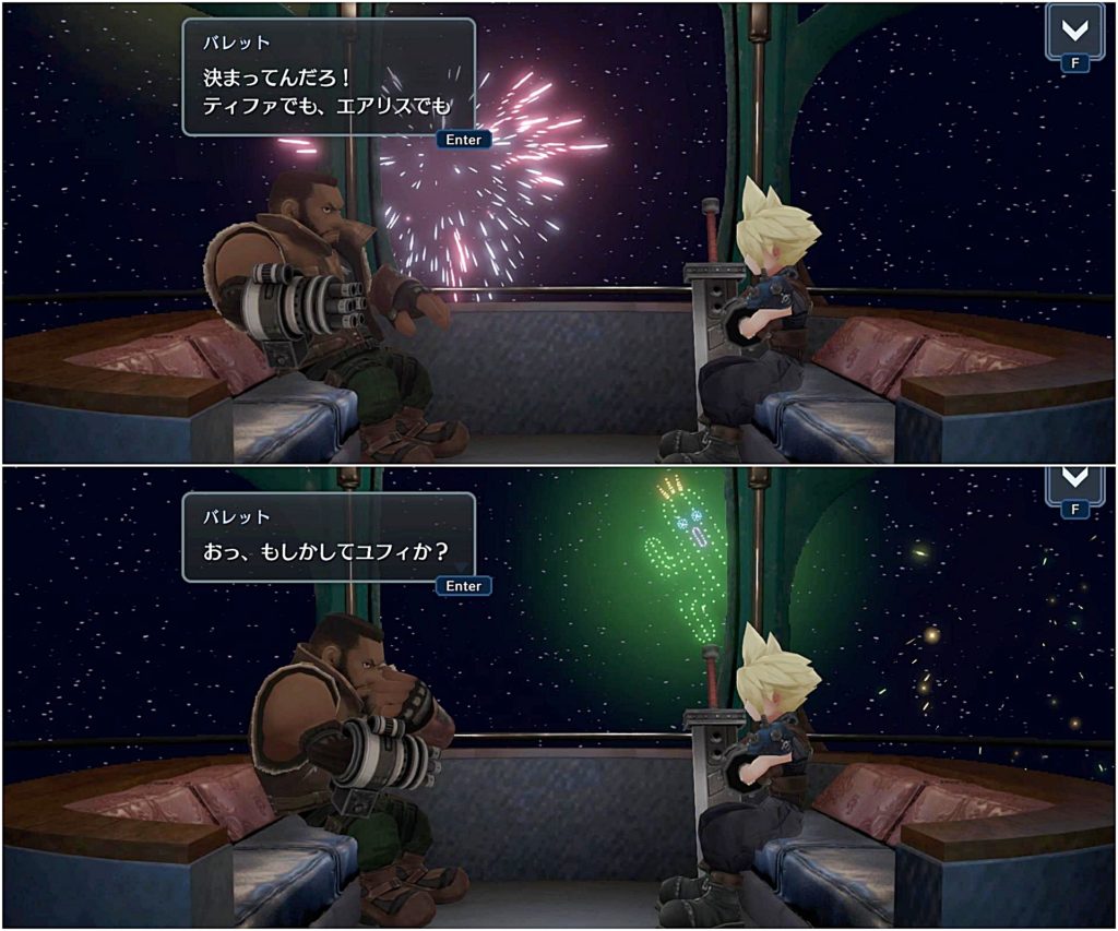 ということで、この後ユフィとエアリスのデートをし、さらには過去のチャプターをやり直してティファとデートして…といろいろやったので次回の記事にそれらをまとめます。
