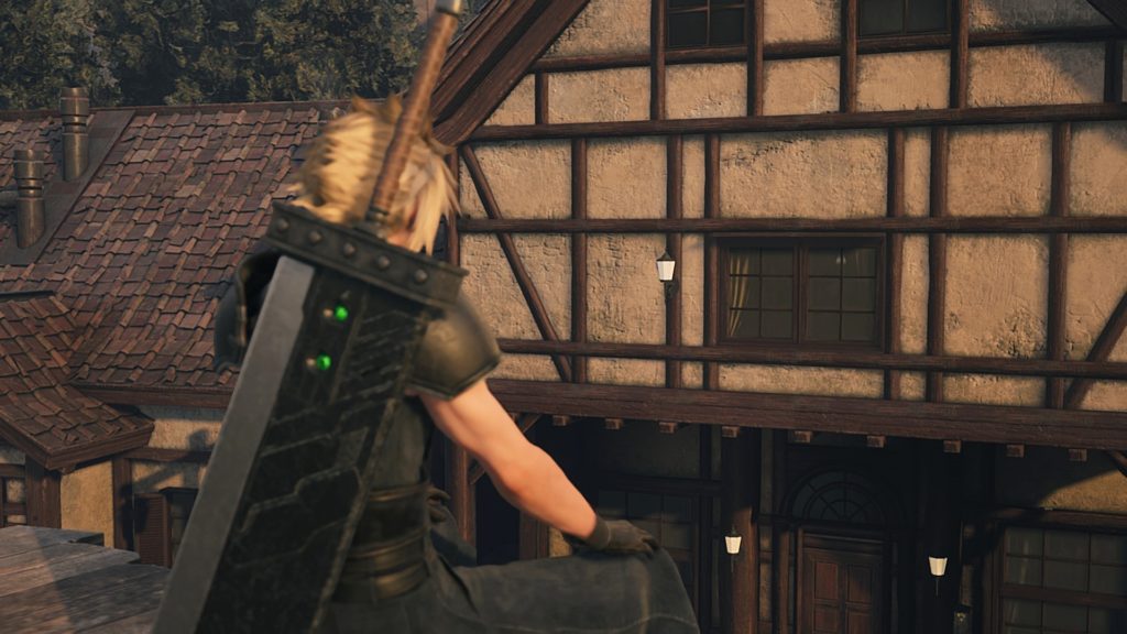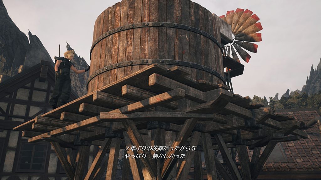 ティファの家に入る前、思い出の給水塔に登ったクラウド。