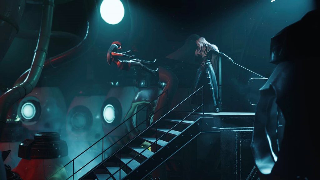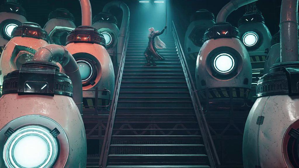 魔晄炉内でティファがセフィロスの正宗を持って仇討ちをしようとしたところ。