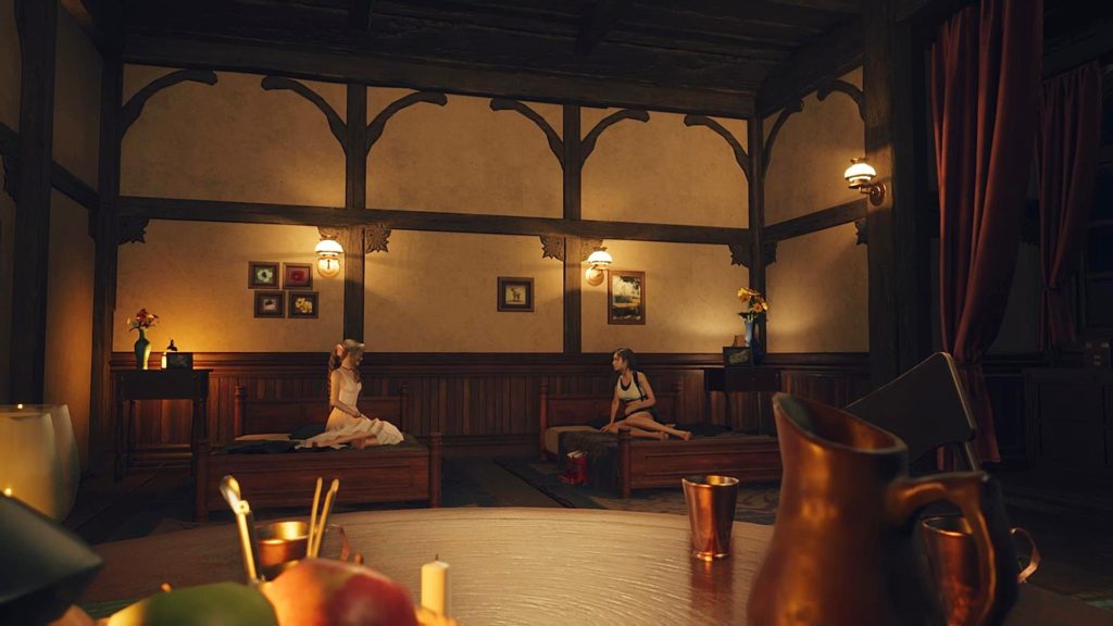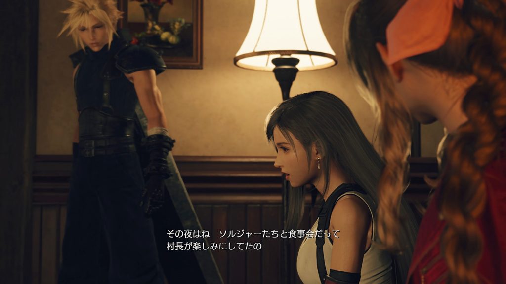 そして寝るときの女子部屋で、ティファは自分が記憶している5年前のニブルヘイムにクラウドは来てなかったことをエアリスに話す。