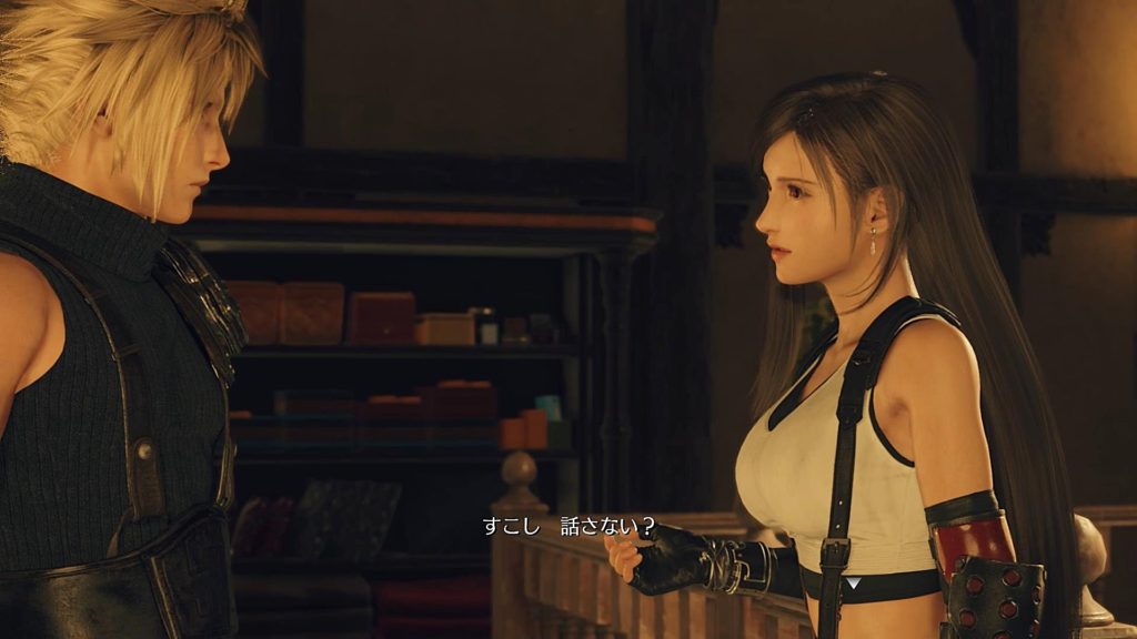 エアリスに話したことで少し勇気が出たのか、ティファが深夜クラウドを呼び出す。