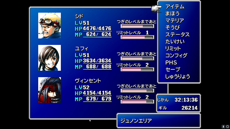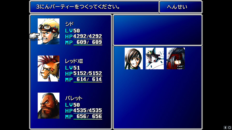 クラウドがいない間のパーティー編成は主にシド、バレット、ヴィンセントのおやじトリオにすることが多い。