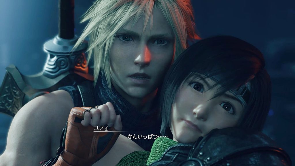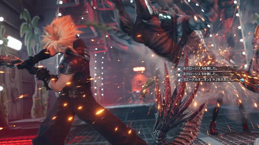 バトル終了後、倒れてくるモンスターにティファが襲われそうになったところをクラウドが一撃で倒す。