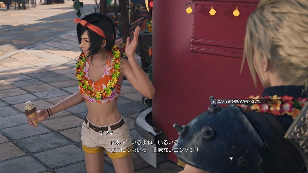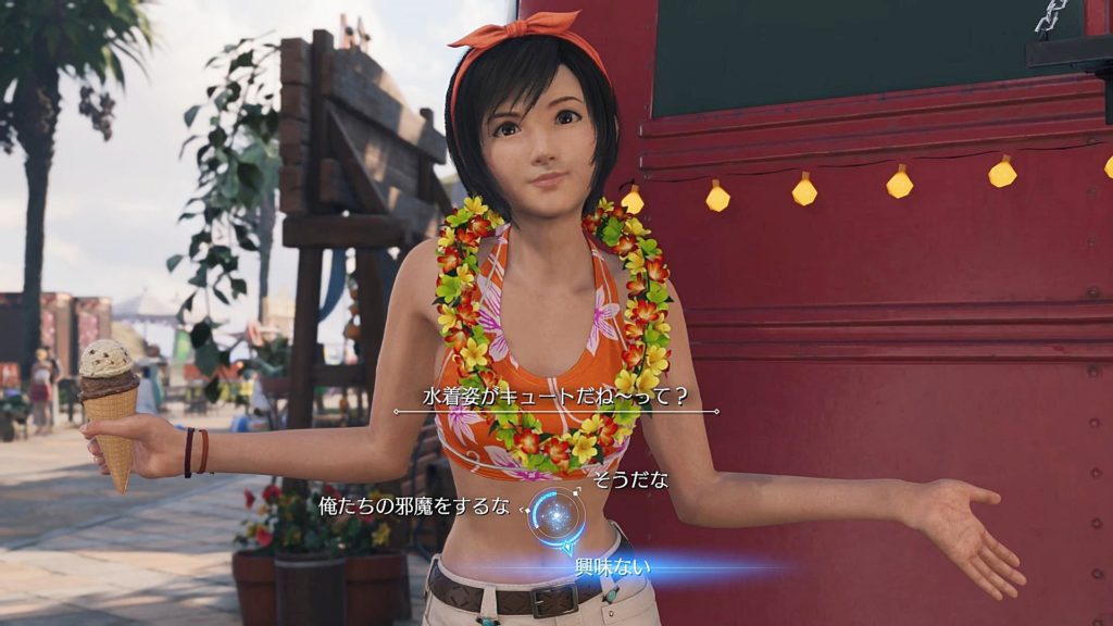 興味ないねと多少冷たいこと言っても、ユフィならこんなふうに返してくれる安心感があるからついついおもしろそうな選択肢を選んでしまう^^;