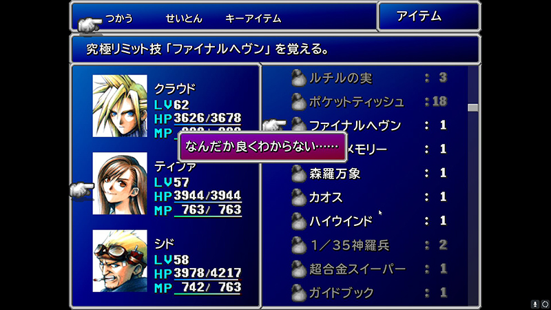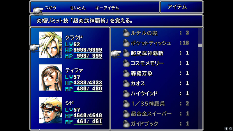 そうした苦労の甲斐あって、かっこいい究極リミット技をクラウドに覚えさせられました。
