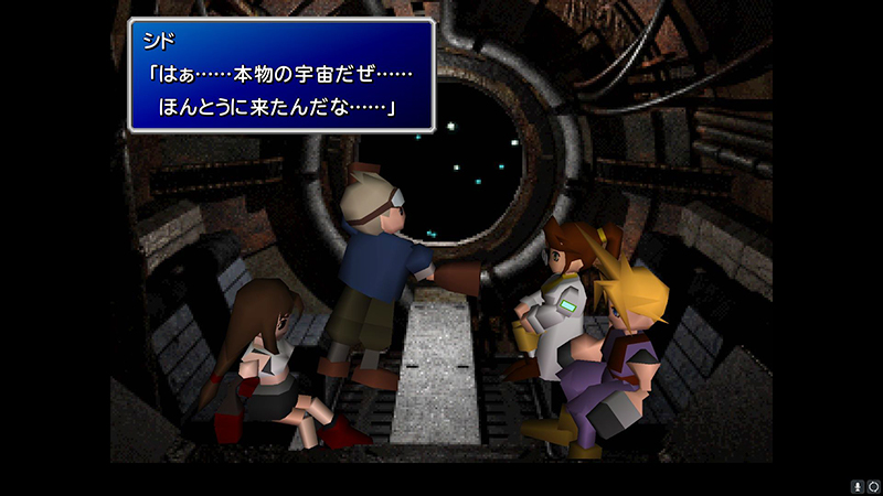ロケットから脱出をしようと急いで移動するなか、突然壊れた機械の破片でシドが下敷きになる。